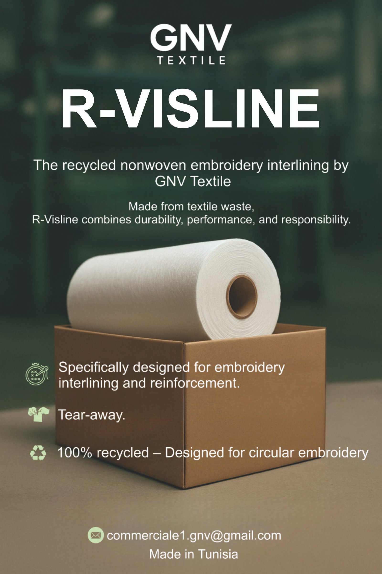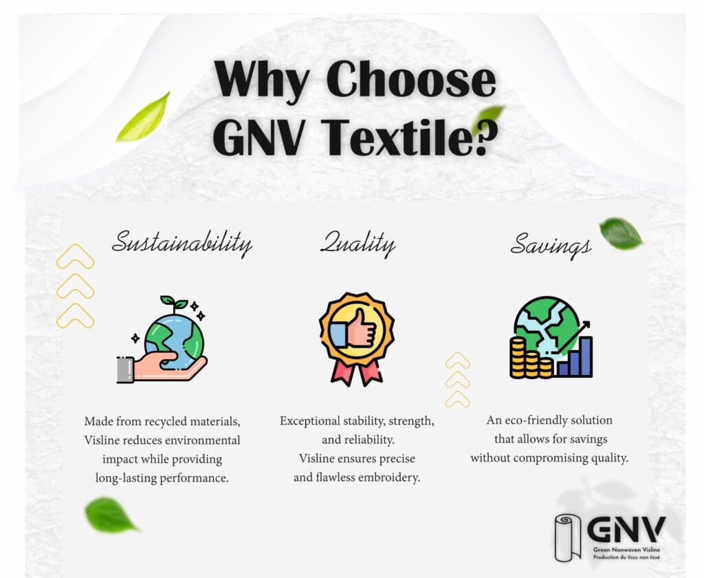 At GNV Textile, we believe in transforming textile waste into opportunity. Our R-Visline product is a 100% recycled nonwoven embroidery interlining, engineered to deliver performance, durability, and responsibility.